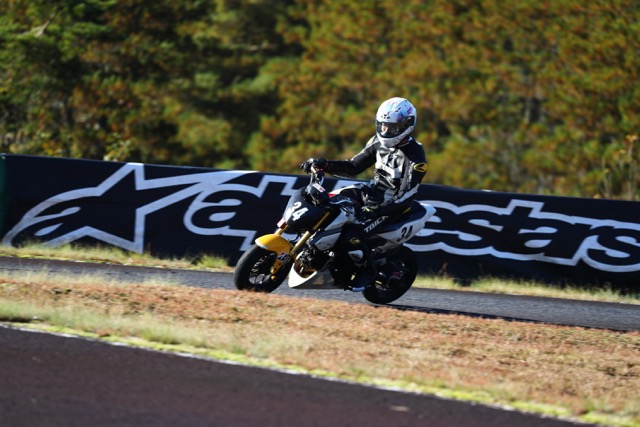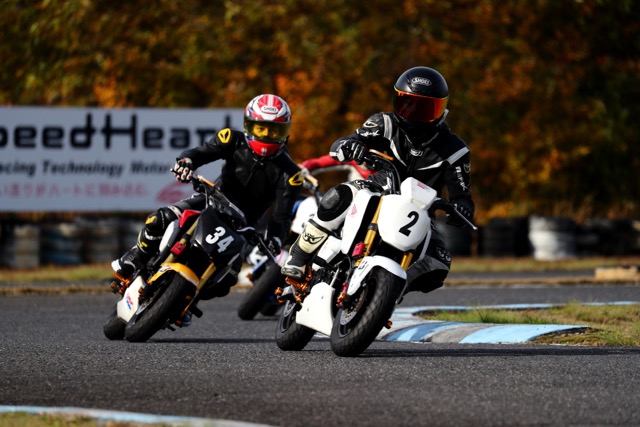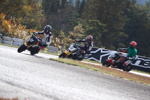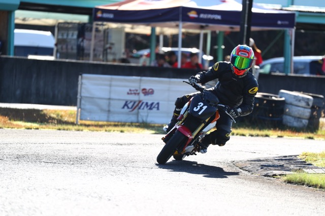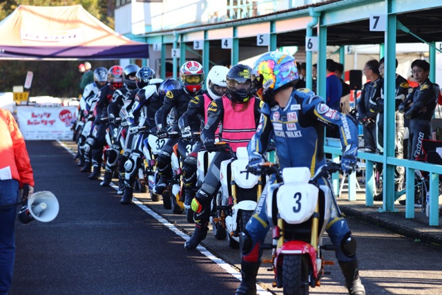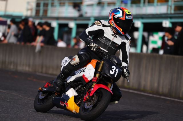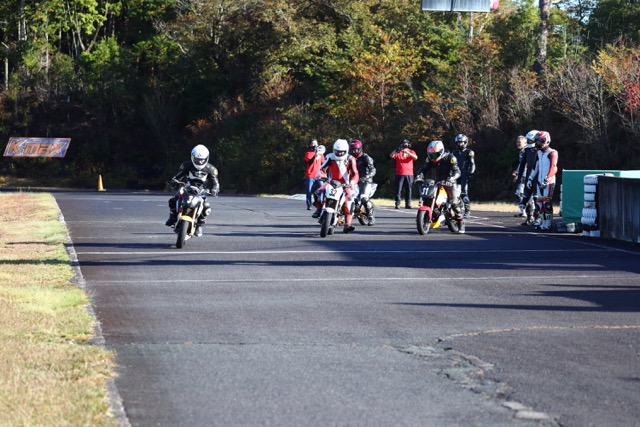 スタート時の路面温度は25.5度。11月半ばとしては考えられないようなあたたかさの中、GROM5クラス、GROM4クラスともに14台のマシンがグリッドを離れていく。